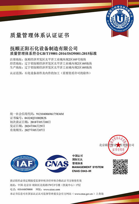 抚顺正阳石化设备制造有限公司,2009年成立至今有着多年研究石化设备制造的企业,注册资金3000万,目前公司在岗员工40余人,其中高级工程师2人、中级职称3人、技师5人,各类技术工人30余人。公司技术工人包括车工、铣工、磨工、铆工、焊工、冲压、模具、数控加工等10余个专业和岗位,专业齐全,技术力量雄厚。是中国石化物资资源市场成员单位,是集设计、制造、安装于一体的石油化工塔内件、脱硫脱硝内构件、反应器内构件、实验装置专业生产企业,是大连石油化工研究院指定的脱硫脱硝内构件、反应器内构件技术授权生产企业。我公司拥有一支以高级工程师、技师为主体的专业技术队伍,同时与多家研院所保持着长期的技术合作关系。主要承接石油、化工塔内件、硫脱硝内构件、反应器内构件、实验装置、非标化工设备的设计与制造。具备各种加工设备50余...